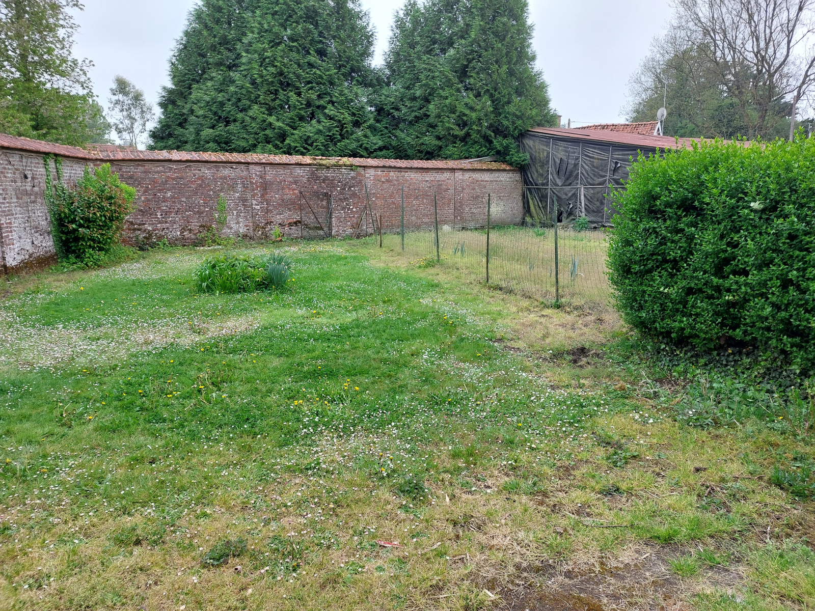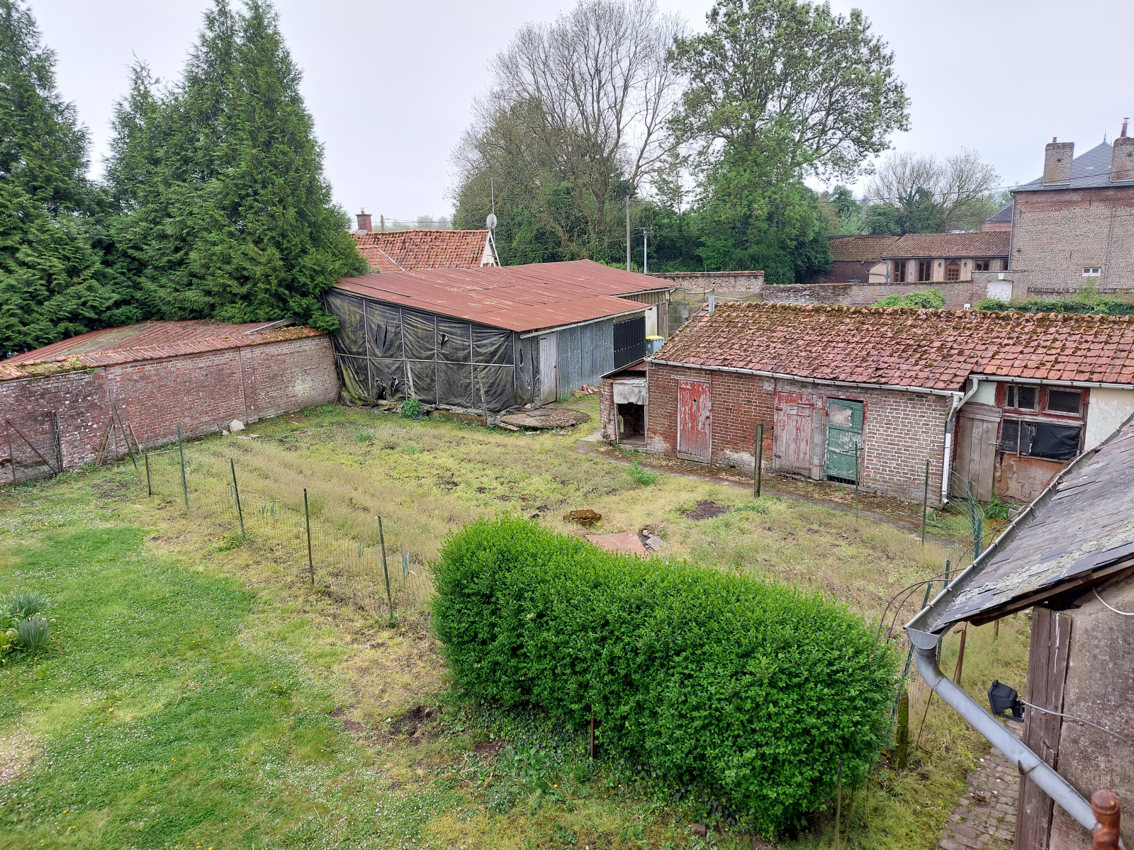 Vous trouverez sur le terrain des dépendances ainsi qu'un grand abri couvert d'environ 100m² (idéal pour y stocker du matériel) ayant un acces direct par une petite rue. Il est possible de stationner plusieurs véhicules sur la propriété.