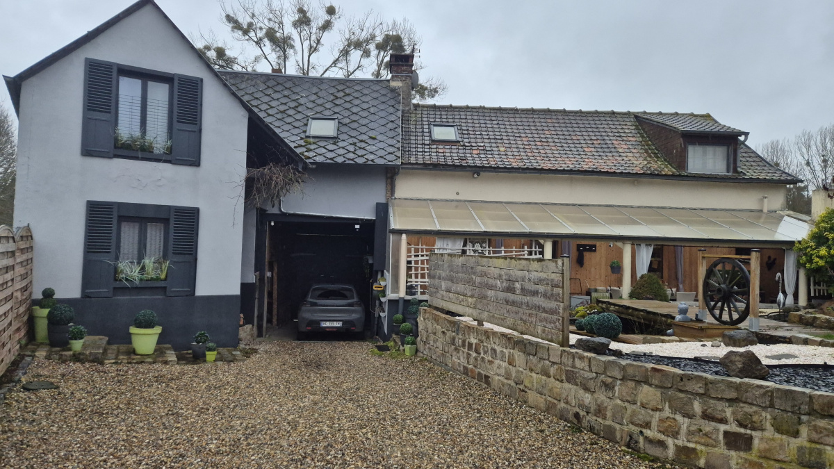 A 20 min du CHU Amiens Sud, coup de coeur pour cette charmante maison de campagne atypique comprenant un double séjour/cuisine, cellier, 3 chambres, un bureau, 2 wc, salle d'eau, espace grenier, superbe cave voûtée, dépendances, jardin aménagé, terrasse couverte avec sa cuisine d'été. dpe D. Prix 178000€ ( honoraires inclus).REF V1050